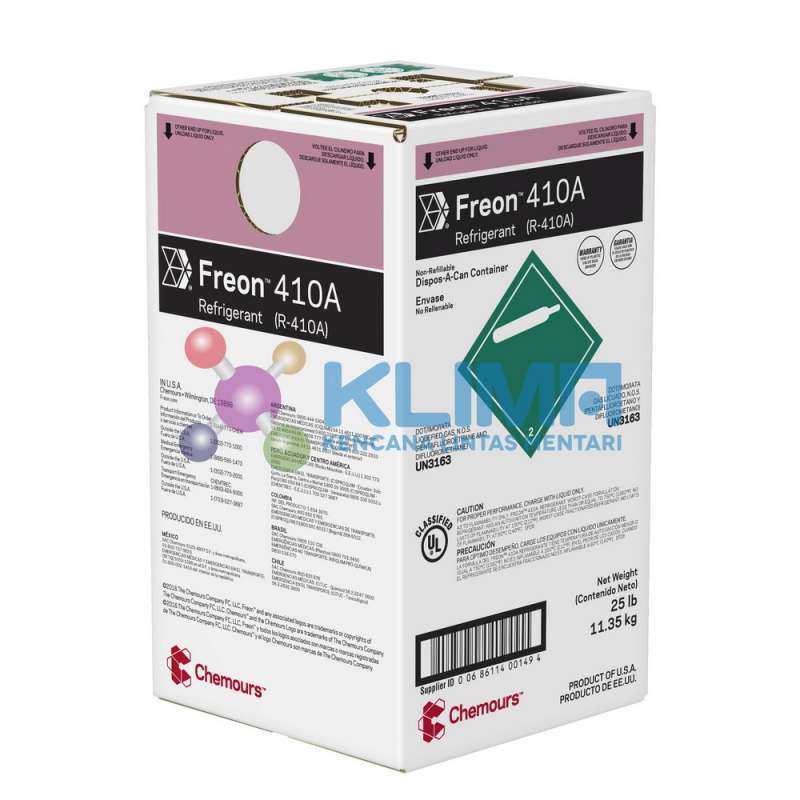 Harga Freon Dupont Chemours R407C made in USA - R407. FREON AC R410a CHEMOURS SHANGHAI R410A di Tokopedia Promo Pengguna Baru Cicilan 0 Kurir Instan. Freon 410A has higher cooling capacity and operating pressures than R-22 for new equipment specifically designed for R-410A.