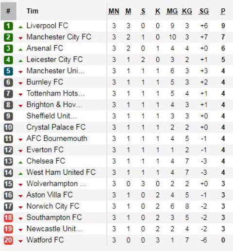 Klasemen Liga Primer Inggris Pekan Ketiga Liverpool Sendirian Di Puncak